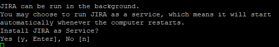 The next question will ask if you want to run JIRA as a service. What this means is two fold: first JIRA will start up as part of the server boot sequence, and second you can start/stop/restart JIRA using systemctl. So…the answer to this is “Of course!”, so you can hit enter.