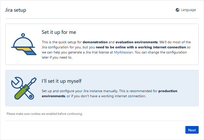 After this, we can finally start JIRA on the server, and start working in a web browser to finish it’s setup.