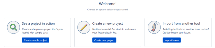 And finally JIRA will ask you if you want to setup a first project. Your options are: