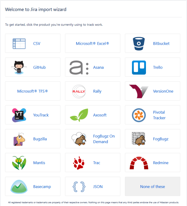 - Import from another tool – This will allow you to import from another tool, like Bugzilla, Github, etc