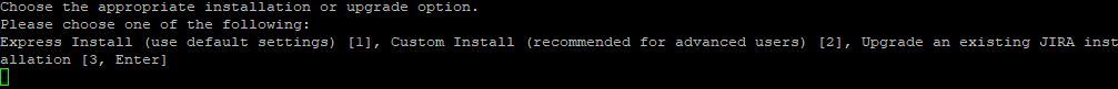 After this, it will ask you the operation you intend to undergo. The Installer will detect that JIRA is installed on the system, and set the default option here to 3, which is upgrade. So press “Enter” to proceed.