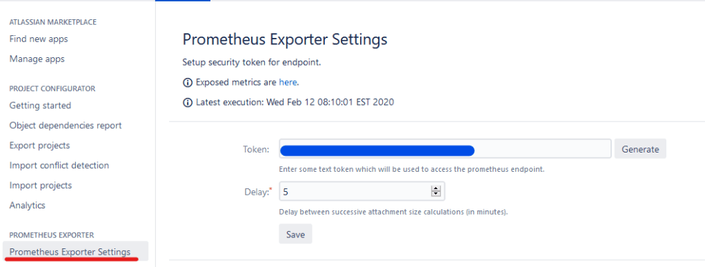 Once you click install, click “Accept & Install” on the pop up, and it’s done! After a refresh, you should notice a new sidebar item called “Prometheus Exporter Settings”. Click that, then click “Generate” next to the token field.