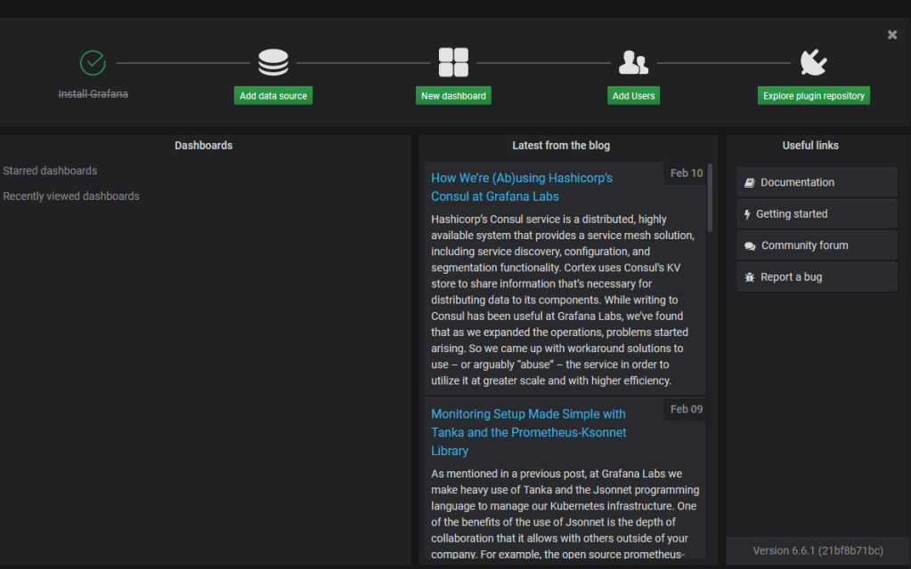 Go to port 3000 of the system on your web browser and you should see it up and running. We’ll hold off on setting up everything else on Grafana until we finish the system setup, though.