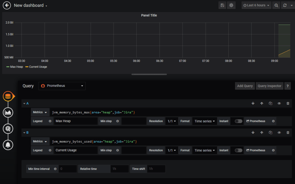 And now you are ready to start visualizing Data. I’ve already covered some Dashboard tricks in my previous attempt at this topic. However, if it helps, here’s how I used Prometheus to setup a graph of the JVM Heap.