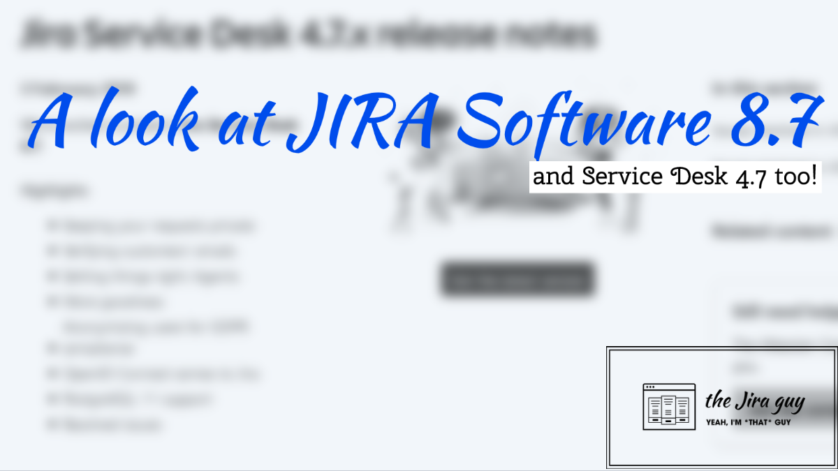 Atlassian released JIRA Core and Software 8.7, as well as JIRA Service Desk 4.7, a few weeks ago. Unlike JIRA 8.6, this only only has a few new features, with most of them relegated to JIRA Service Desk, but I figured I’d take a look at them all the same.