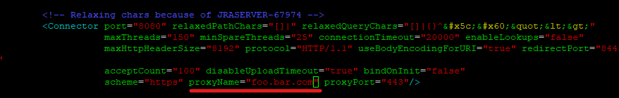 Yep. That’s our third gotcha. Any time you change JIRA’s URL, you will need to change the proxy settings in conf/server.xml and restart JIRA. Specifically, the setting “proxyName” listed here: