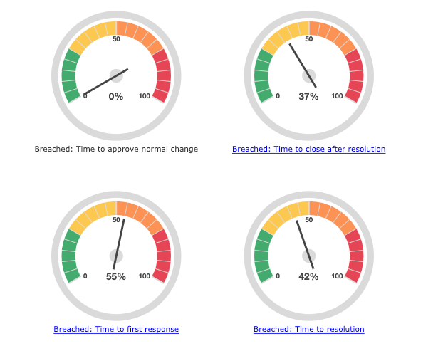 Another ITSM gadget I really like is these SLA Gauges. I love the visual appearance of a gauge, and feel it can tell you a good bit of information intuitively. Unfortunately, there is no such gadget within JIRA out of the box, and I’ve never been comfortable with one-shot Apps that add them, so seeing this in the demo was pure 😍.
