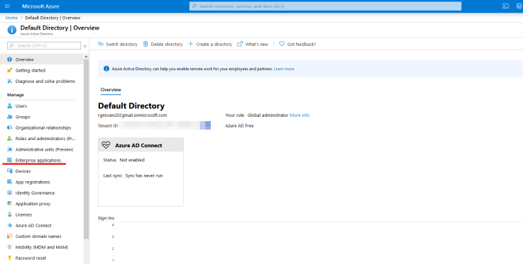 - To get started, go to your Azure AD Directory, then click “Enterprise Applications” in the sidebar (underscored in red). This page is where you will set up the Integration with Atlassian Cloud.