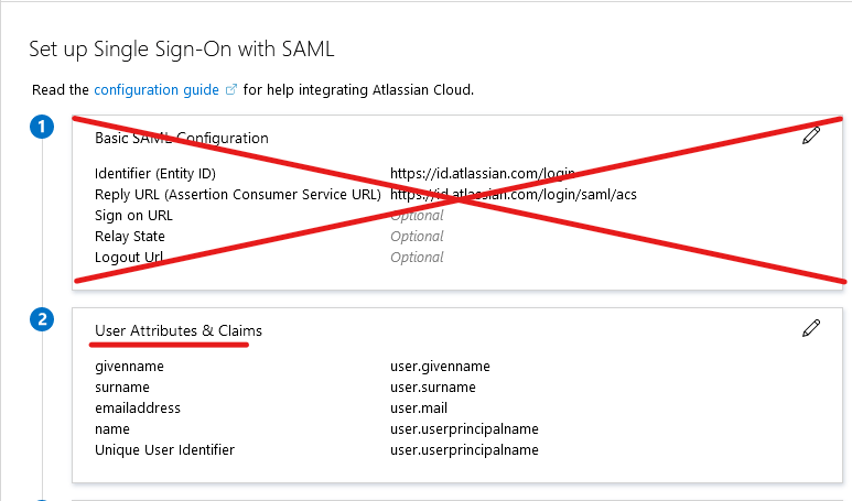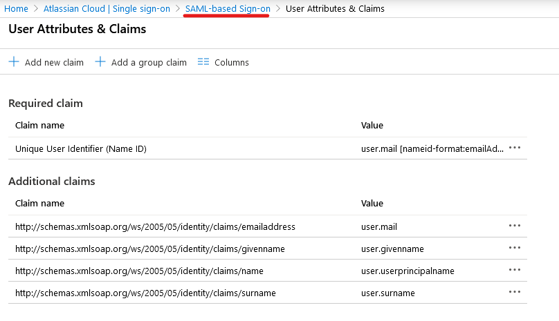 - Here, we’ll only need to update one attribute. By default, Azure AD wants to send the user’s Principle Name to Atlassian Cloud. However, Atlassian wants the email address in this field. So to change it, click “Unique User Identifier (Name ID).