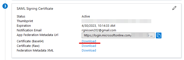 - With the Attributes & Claims ready, we can start collecting information Atlassian will need. To begin with, download the Base64 Certificate in Section 3 to your local system.