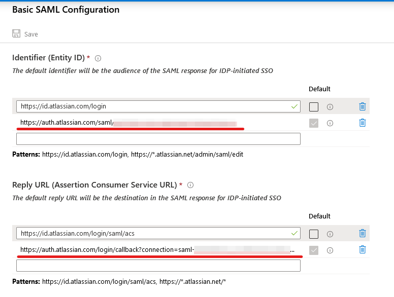 - The SP Entity ID field from Atlassian goes into the Identifier (Entity ID) field in Azure