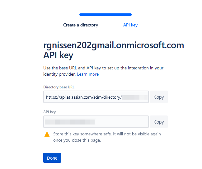 - With this created, Atlassian presents us with two pieces of information that we’ll need to give Azure. Copy both the URL and the API key.