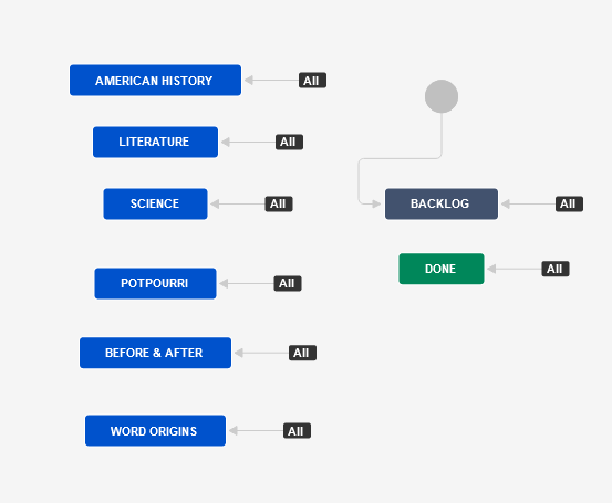 And that’s it for the project configuration. All I need to do now is create issues to represent each of the thirty questions on a typical Jeopardy board. I found a good resource for getting questions quickly was https://jeopardyquestions.com. But feel free to think up your own company or ACE specific questions!