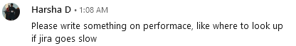Well, Harsha, it’s been a while since I released a System focused post, so challenge accepted. Fair warning, though – this topic gets intense. Jira is a rather complicated system. Even if we ignore the configuration and focus on the system, there are still many places we need to check out to know what bottleneck is causing Jira to perform slowly. But too late, you’ve already asked for it, so let’s dive in.