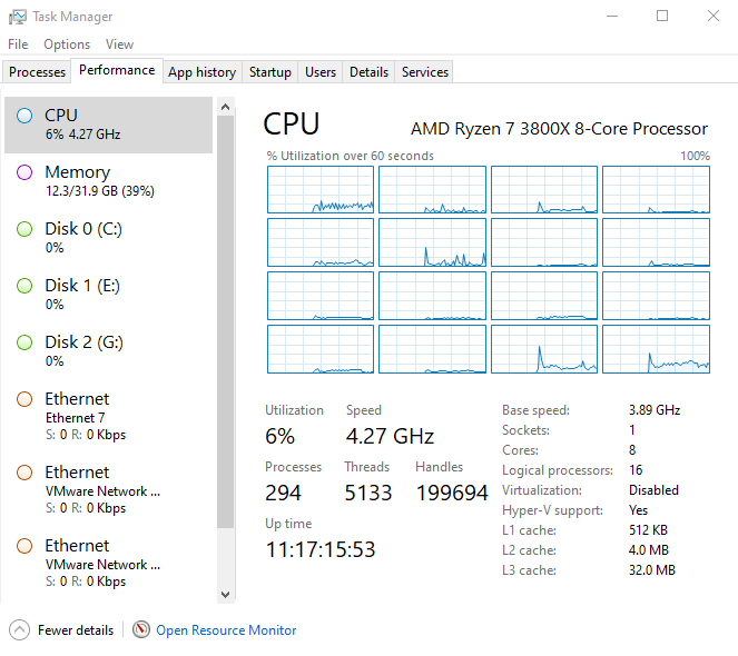 Well, this should have been obvious as the first place to look. If your CPU is overloaded, it’s going to impact performance for the end-user. It amazes me how many people skip looking at this and head directly to adding more Heap Memory to the JVM (which we’ll talk about in a moment). If you are on a Windows Server, you will likely know how to check CPU on it via the Task Manager’s Performance Tab.