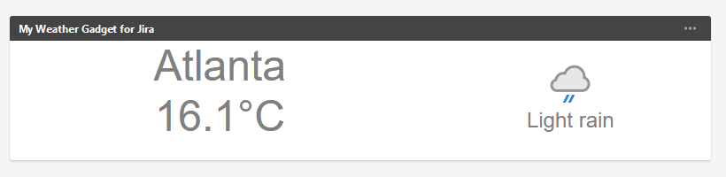 Our next Add-on is the My Weather Gadget. This just adds the ability to add the current weather to a Jira Dashboard. Again, and simple concept that goes a long way to make your Jira instance feel a bit more personal.