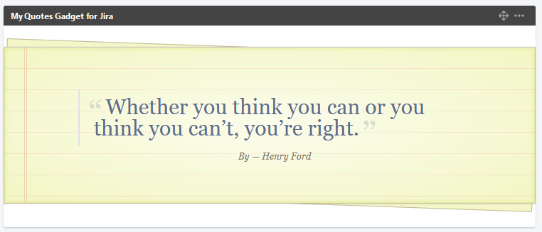 This Gadget is from the same developer, and is of the same mindset. It just provides inspirational quotes to make your Jira instance feel a bit more…at home. I for one have always had an odd fascination with motivational posters, so this is the kind of thing I like to see.