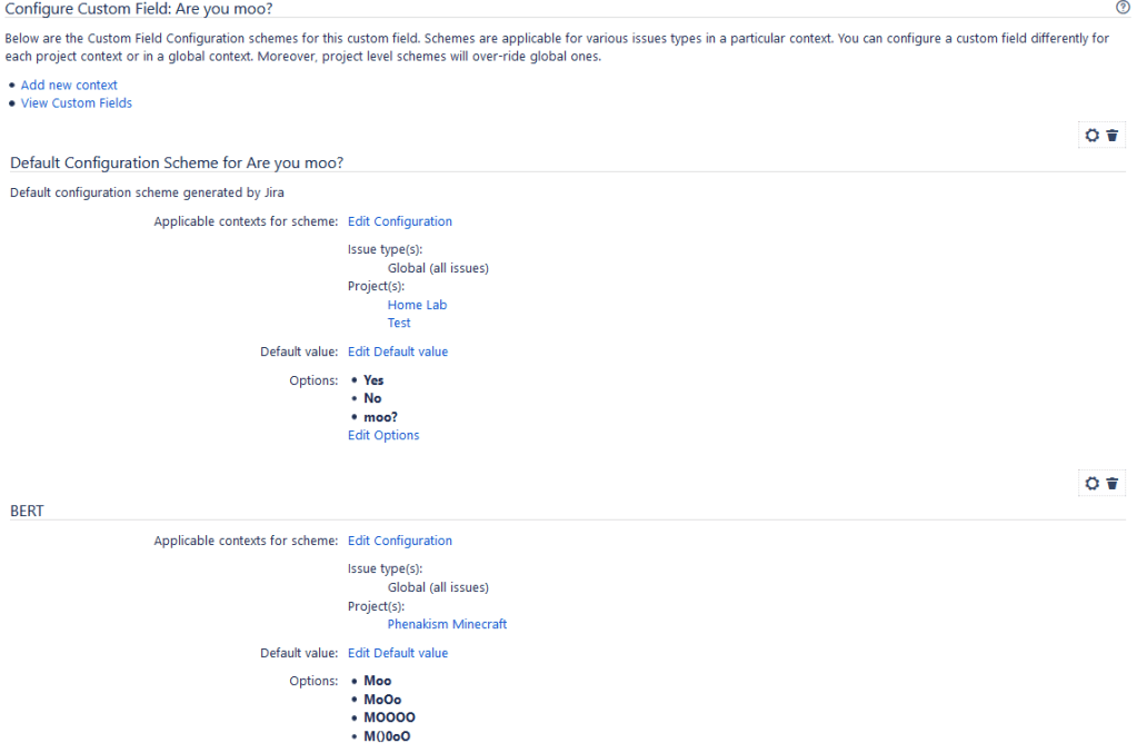 However, I value Admin Time a heck of a lot higher than I value Computer time. While I recognize the value in having a clean instance, I don’t feel like going through the contexts of a couple of dozen custom fields just to add another project to my instance. So, my recommendation is to leave this context to Global everywhere you can and only limit its scope when necessary.