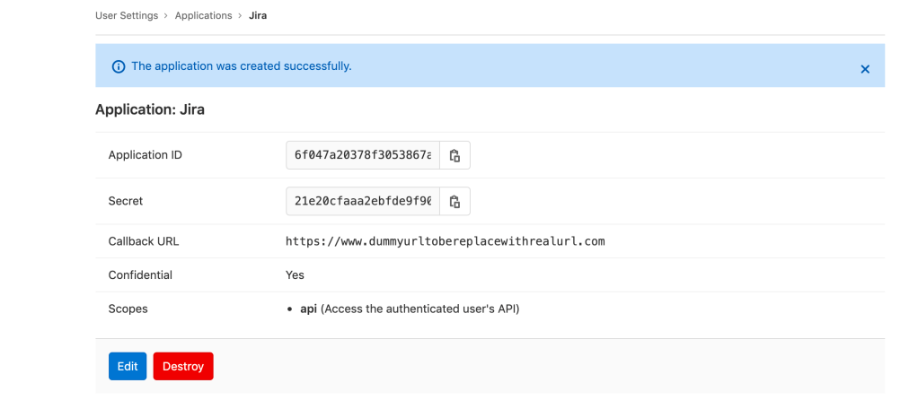 This will give a screen with your Application ID and Secret. Keep this handy, as we’ll be copying these values into Jira shortly.