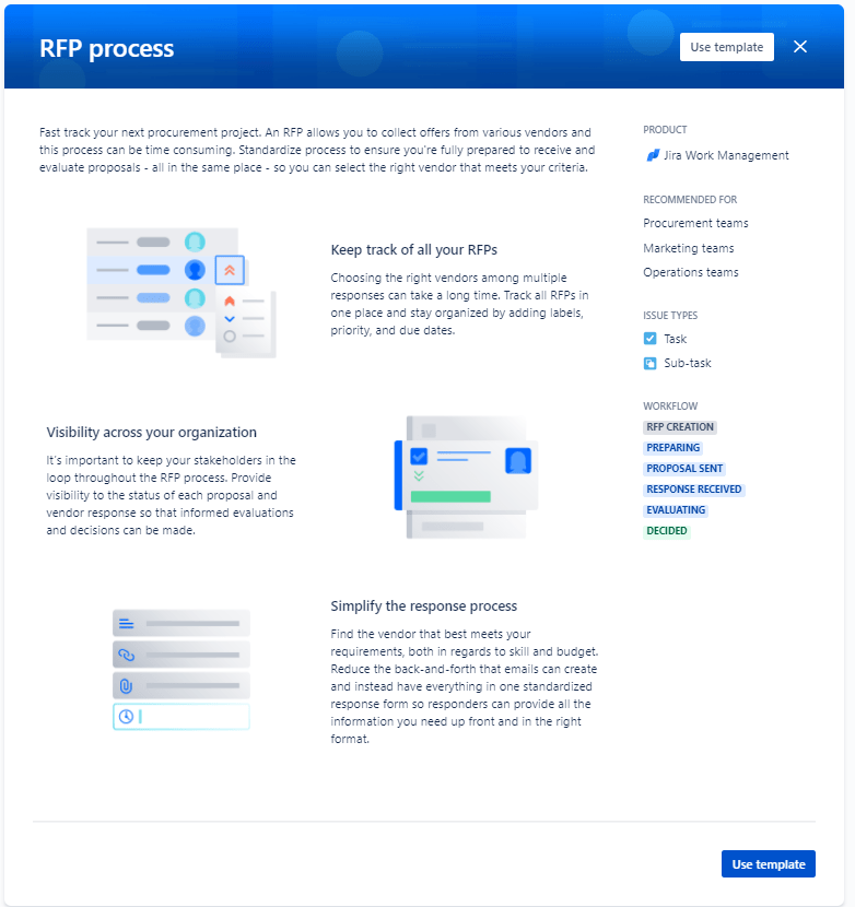 One of the benefits of going to a relatively small University in a city that does a lot of Government Contract work – we had to learn about the whole RFP process in detail. This seems to cover the process pretty well, right out of the box. I get the devil might be in the details with a process like this, but if this gets you 90% there, a qualified Jira Admin should be able to tweak it the remaining 10%. GIven that, still giving this an A-Rank.