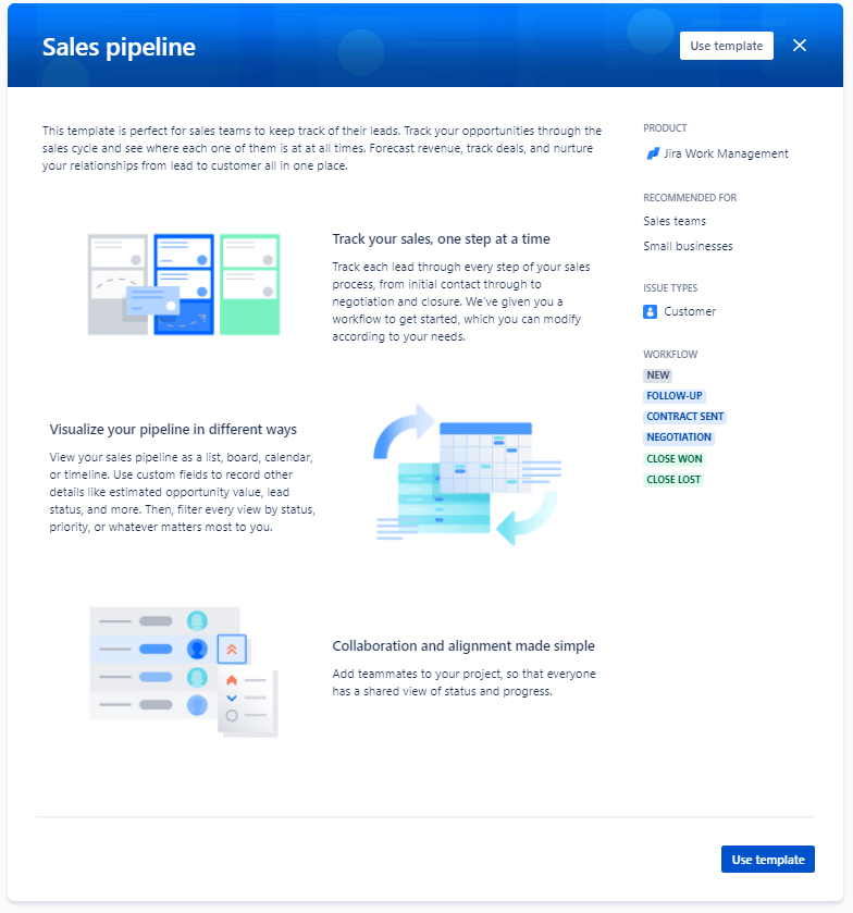 Lead Tracking and a Sales Pipeline are very similar in the concept, but differ slightly enough that having different templates to suit whatever your doing makes sense. I’m not a Sales professional, so I don’t fully understand the differences, to be clear. Just that they do exist. As I said, I feel the power of a template is to get team something to use to get the conversation started. Once a team is using Jira and understands their pain points, we can work together to get the problems resolved. So, I’ll give this a B-Tier as well.